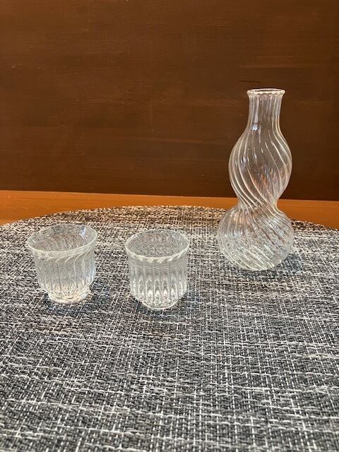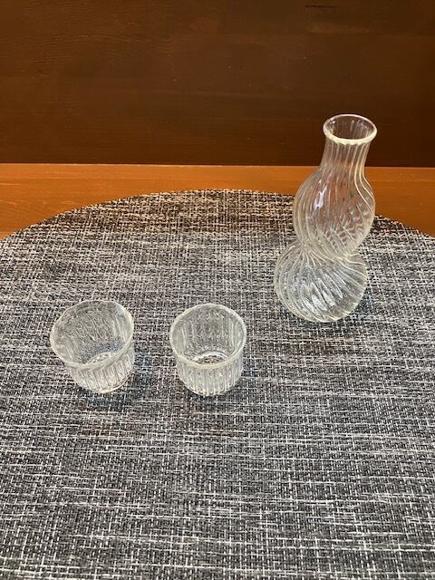 品質の高い耐熱ガラス製の徳利(1合)1本とぐい呑み2個の美しいセットがご自宅用やお客様用のギフトに最適です。