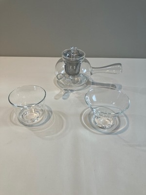 ③-3 急須 (横手)湯呑みセット(クリア) 耐熱ガラス製 KOZO=K3