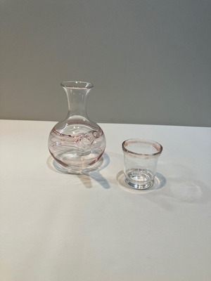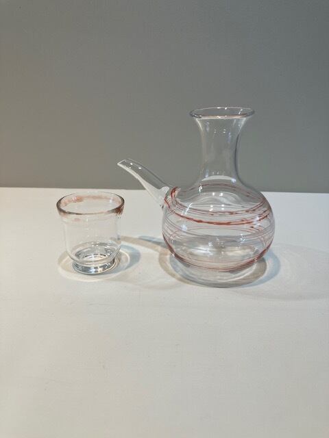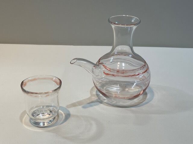 ③-5 オリジナル酒器 (片口)ぐい呑みセット(白×赤) 耐熱ガラス製 KOZO=K3
