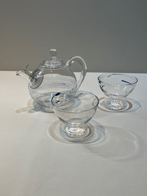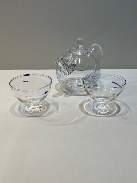 ⑤-2 急須 (後手)湯呑みセット(ブルー) 耐熱ガラス製 KOZO=K3