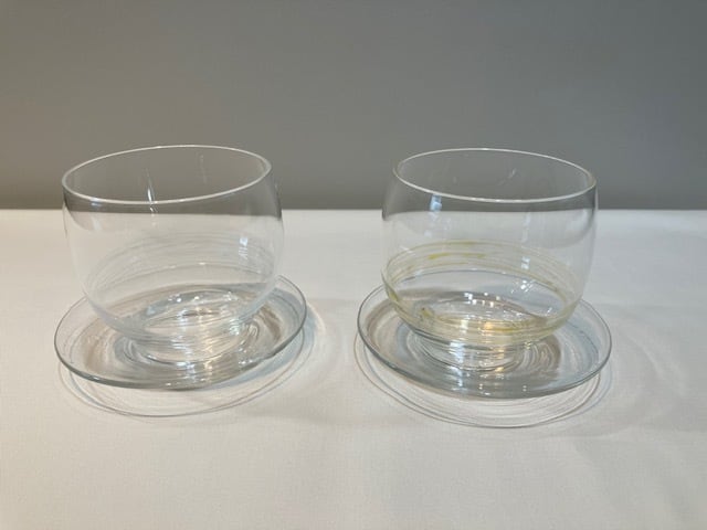 耐熱ガラスを使用しているため、煮沸消毒が可能です。優しく柔らかいスポンジを使って洗浄し、金属たわしなどはお避けください。透明感と美しさを保つために、丁寧なお手入れをお勧めします。